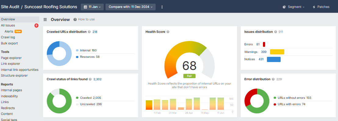 To help Suncoast Roofing Solutions overcome its online visibility issues, we developed a full SEO plan focused on five main areas: technical SEO, on-page updates, content creation, link building, and local SEO.